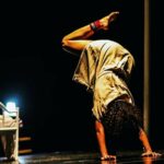 Dans un espace théâtral sombre, « Gregor » apparaît comme un danseur solitaire, enfermé dans des gestes répétitifs qui symbolisent la lourdeur de la vie quotidienne.